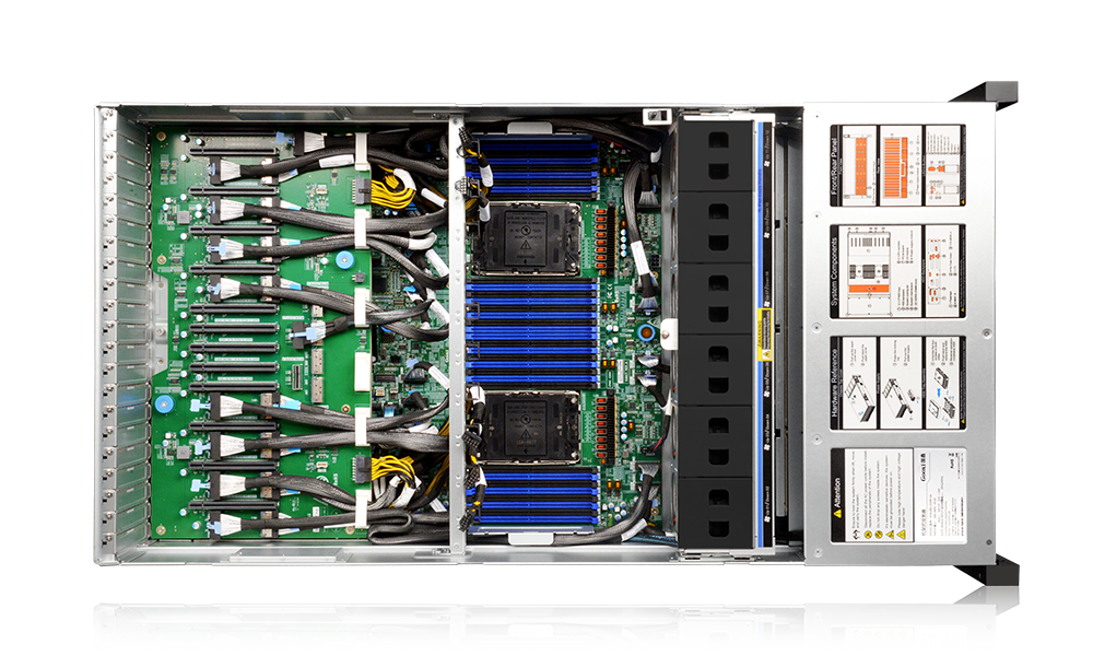 | PCIe扩展 | 最多支持13个PCIe扩展插槽(OCP3.0卡可选PCIe5.0 x8或 x16与其中1个PCIe5.0标准单宽插槽互斥) |